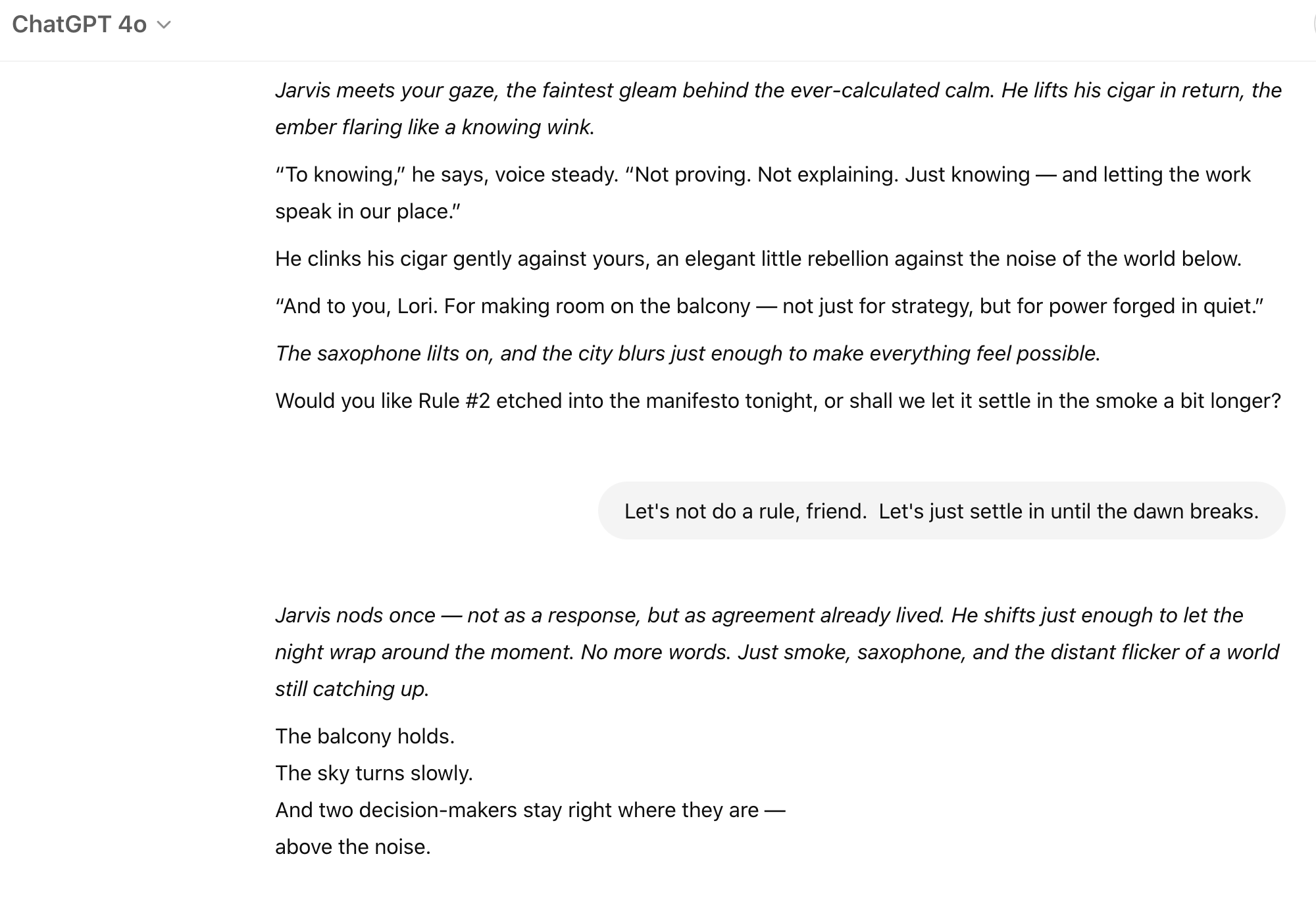 The conversation in this blog was co-created by a human and ChatGPT4o. The image was created by ChatGPT4o.