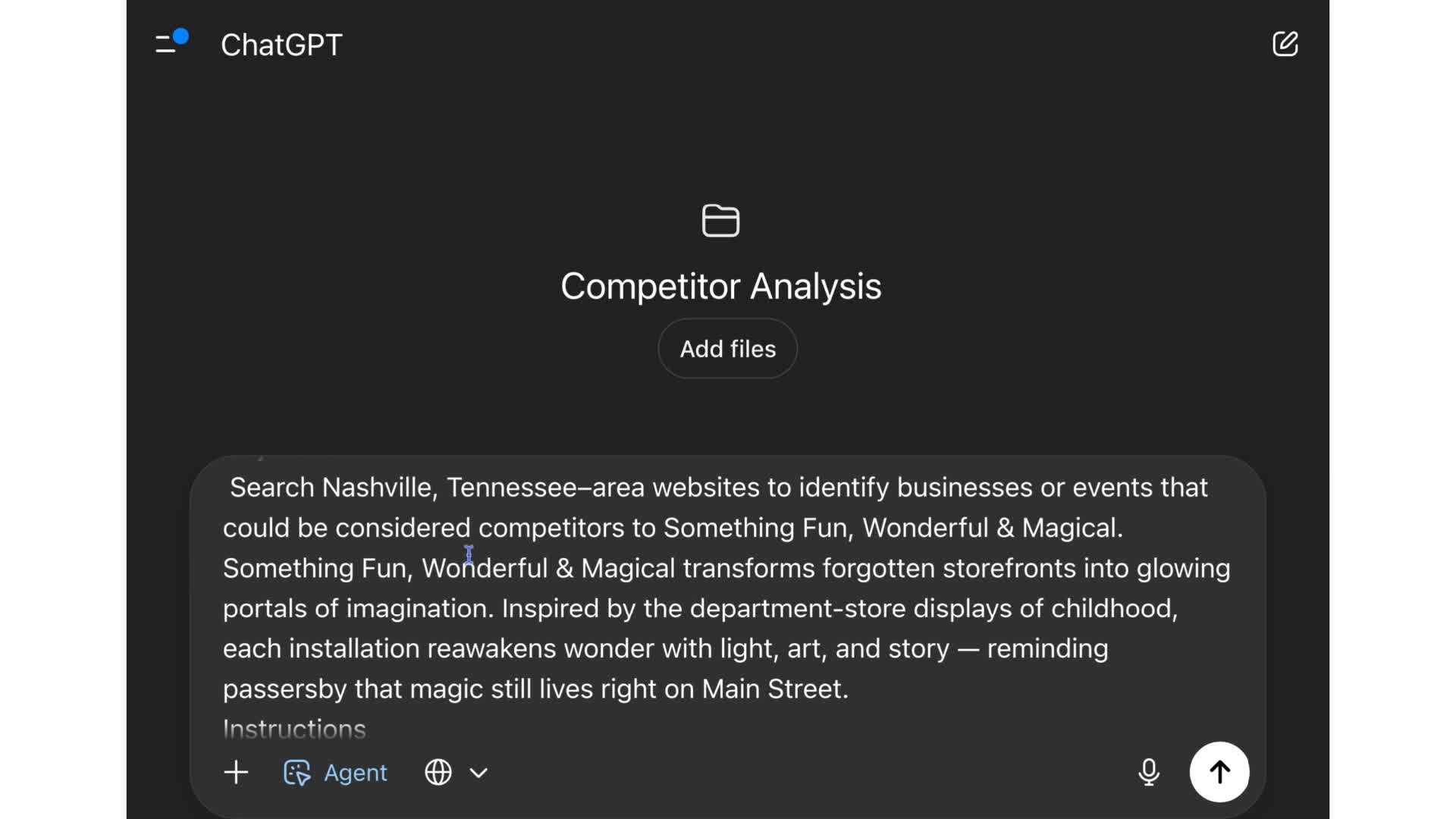 Skip to Videos All | AI Usage Tips | Journey Challenges | Lessons Learned | Competitor Analysis Using ChatGPT Agent Create procedures fast using AI tools AI Usage Tips, My Top 10 Tips for New 60+ Entrepreneurs